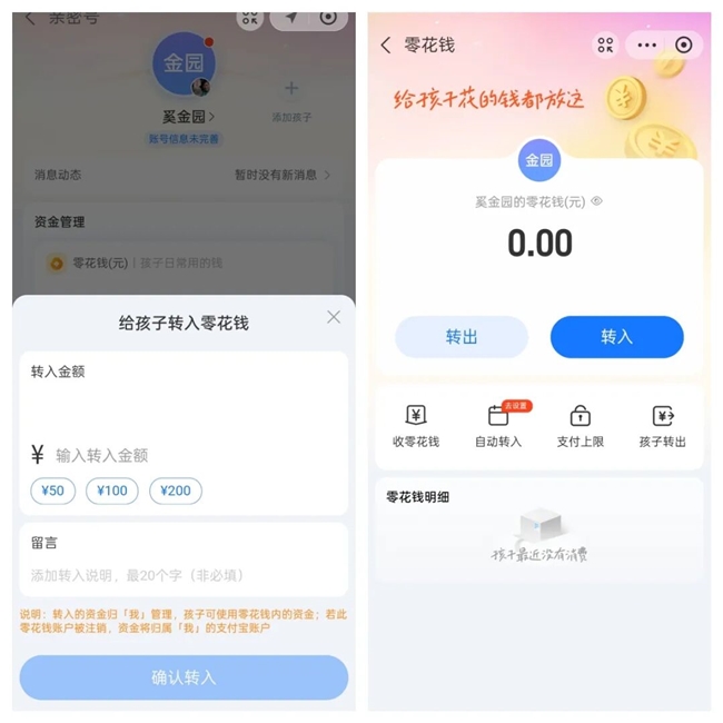 支付寶管控零花錢(qián),讓娃學(xué)會(huì)“花錢(qián)不任性”