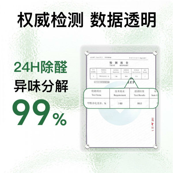 這款產(chǎn)品能夠 24 小時(shí)深度除甲醛,無需光照,可以深入滲透板材內(nèi)部,瓦解甲醛將其轉(zhuǎn)化成 H20 和 CO2。并且不含氧化劑酒精和香精,環(huán)保無毒。因其高效安全的特性,被很多裝修完的私人家裝,醫(yī)院,幼兒園,高級會(huì)所等高要求場所廣泛應(yīng)用于裝修后甲醛的治理。