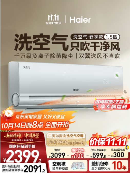 隨著 11 月氣溫漸涼,制熱需求逐步攀升,加上雙十一預(yù)售已于 10 月 9 日正式開啟,這個時候入手一款兼顧制熱高效、節(jié)能耐用且性價比出眾的空調(diào)正合適。那么空調(diào)哪個品牌好?如何挑選到適配秋冬使用的 1.5 匹掛機空調(diào)呢?