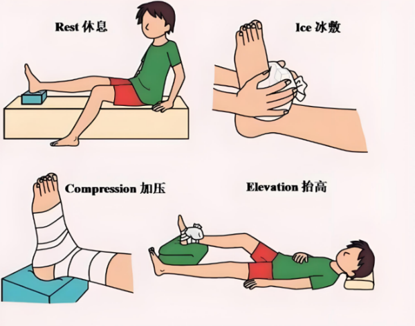 1.休息(R):立即停止活動,避免負重或移動受傷部位,必要時用支具或繃帶簡單固定,防止二次損傷。