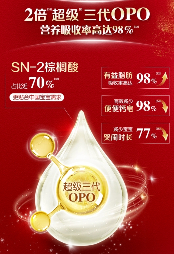 超凡吸收力:搭載2倍超級3代OPO,SN-2棕櫚酸占比近70%,有益脂肪吸收率達98%,減少98%便便鈣皂與77%寶寶哭鬧,還經(jīng)科學認證有“少哭鬧、好吸收”等7大黃金喂養(yǎng)效果,貼合中國寶寶體質(zhì)。